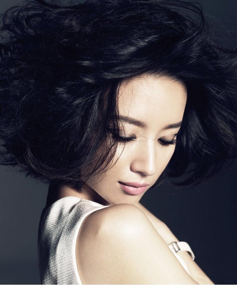 董洁波浪卷发搭配烟熏妆展现妩媚迷人风姿