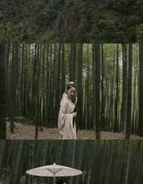 他们的日常生活,便是将诗情画意融入每一个瞬间。竹林中,光线扮演着最出色的画家。晨昏时分,丁达尔效应造就的光缕如纱如雾,穿透层层叠叠的竹叶。光与影在竹林空地间“捉迷藏”,在衣袂和肌肤上流淌,营造出空灵而清寂的氛围。他们或许会在这样的光线下对弈、品茗,或是简单地静坐。女子也许手执一柄油纸伞,伞面的色彩与竹林的翠绿相映成趣,古朴而精致;男子可能横吹一管长箫,箫声幽远,惊起竹梢的雀鸟,更添几分悠悠不可测的意境。