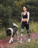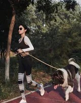 在光影定格的瞬间,我们看到了演员韩丹桐不同于红毯华服与镜头前的另一面——充满了生命活力与自然亲和力的动人时刻。一组户外写真记录下了她与一只大型爱犬在晨光中一同奔跑、锻炼的温馨画面,展现了健康、阳光的生活方式以及人与动物之间真挚美好的陪伴。