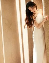 而在另一组暖色调的造型中,她又化身为温暖慵懒的缪斯。身着质感柔软的针织或垂坠感十足的长裙,置身于朦胧的光晕之中。她或倚窗沉思,或直面镜头展露淡然浅笑。此时的光线变得柔和,与她肌肤特有的冷白皮相互映衬,透出一种晶莹剔透的质感。这份温暖与之前的清冷形成鲜明对比,展示了女神范中亲近、柔和的一面,仿佛冬日午后的阳光,暖而不灼。