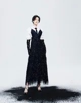 镜头前的李小冉,展现出了作为演员极强的可塑性与表现力。她并非仅仅是服装的展示者,更是情绪的诉说者、氛围的营造者。在一张黑白影像中,她身着简洁的修身礼服,侧身而立,微光勾勒出她流畅优雅的肩颈线条与下颌线。她眼眸低垂,神色静谧而疏离,一种不染尘嚣的清冷气质扑面而来,仿佛时间在此刻凝固,只剩下光影与她之间无声的对话。这种极具电影感的画面,凸显了她经过岁月沉淀后愈发沉稳、内敛的力量。