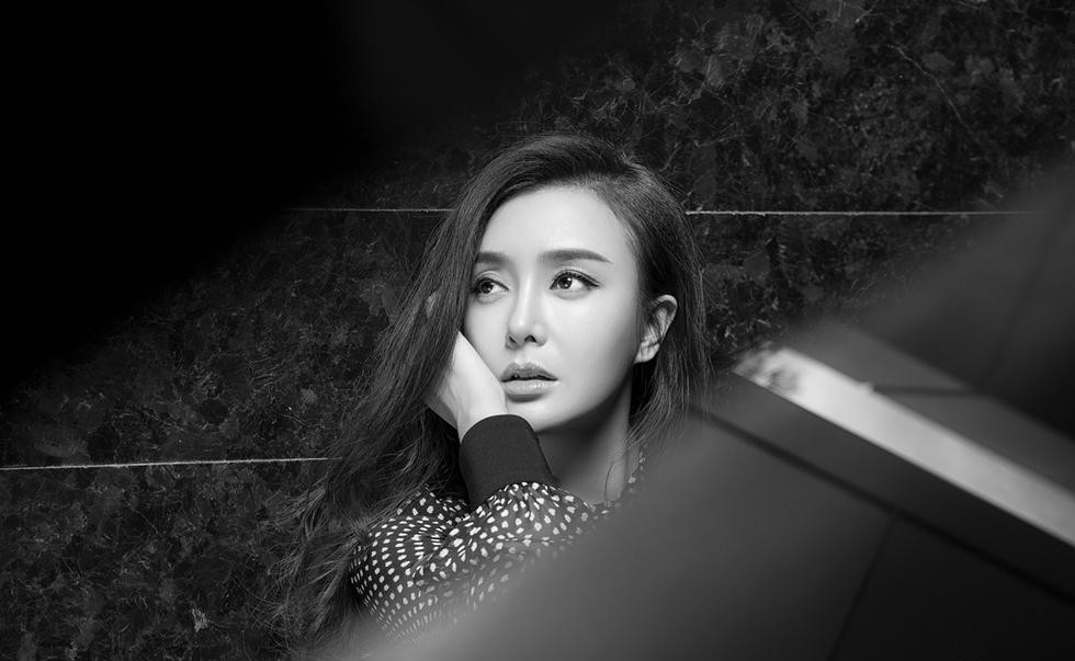 秦岚黑白光影间演绎万种风情披肩卷发勾勒时尚画卷