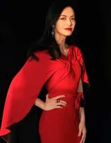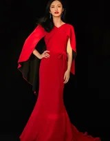礼服,是明星在红毯上的战袍,更是表达态度的语言。姚晨选择的这件红色长裙,设计极具巧思。整体采用深邃而经典的正红色,完美衬托出其白皙肤色与强大气场。礼服上身是交叉绑带与深V领的结合,巧妙地流露出些许性感,同时勾勒出挺拔的身姿与锁骨线条;独特的披风式肩部设计,为整体造型增添了行走间的飘逸动感与女王风范。垂坠感极强的裙摆如瀑布般泻下,腰间一枚简洁的蝴蝶结系带,既提高了腰线,优化了身材比例,又注入了一丝灵动与柔美。