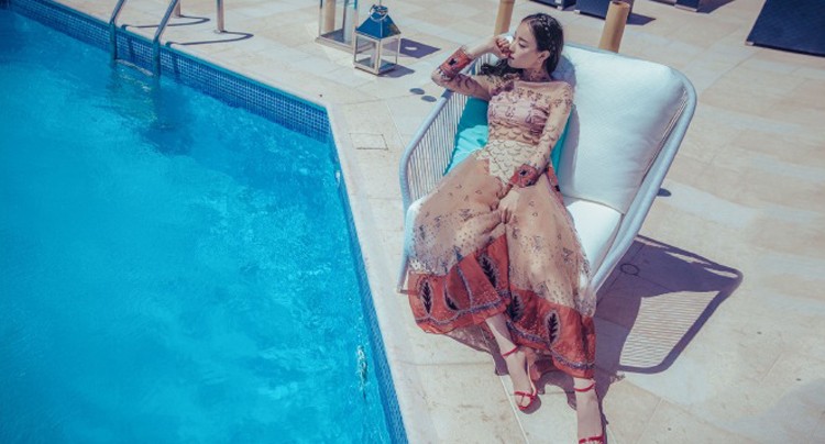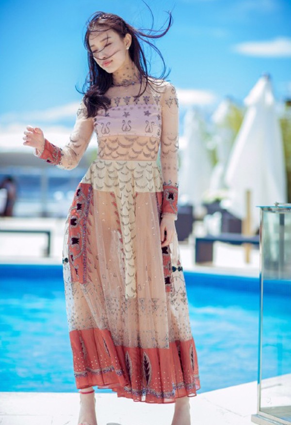 除了眼神,倪妮对肢体语言的运用也堪称高级。她深谙“松弛即力量”的法则,在镜头前毫无刻意摆拍的僵硬感。无论是随意倚靠时颈肩形成的优美曲线,还是手指轻抚发丝时腕部转动的角度,都显得自然流畅,却又精准地构成了画面的视觉焦点。这种能力部分得益于她长期坚持的形体管理,如日常的普拉提训练,让她拥有了挺拔舒展而又不失柔软的身姿。正是这份自律带来的身体掌控力,让她能将一件简单的针织裙或吊带裙,穿出无限的风情与高级感。