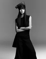 齐刘海与长直发的组合,在丽莎身上早已超越普通发型范畴,成为她独特的个人符号。在这组写真中,这一发型以其极致的简洁与利落,完美衬托了每一套造型的复杂与精巧。浓密平整的刘海下,一双明眸或冷冽凝视,或微微垂目,传递出疏离而强大的气场。长发如黑色丝绸般垂坠,在光影流动间成为最佳的视觉引导,时而勾勒面部轮廓,时而与服装材质形成质感对比。