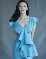 珠宝配饰的选择也体现了极高的审美水准。没有过多繁复的堆砌,仅以简约而璀璨的项链与耳饰点缀于颈间与耳畔。它们不仅是华丽的装饰,更是光影的载体,星星点点的光芒与深V领口形成巧妙呼应,将人们的视线自然引导至她优越的肩颈区域,提升了整体造型的精致度与奢华感,仿佛夜空中的星辰落入凡间,只为点缀她的优雅。