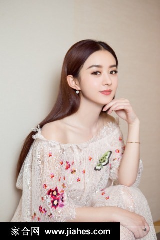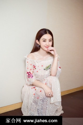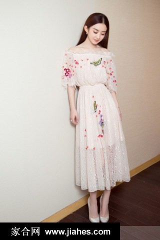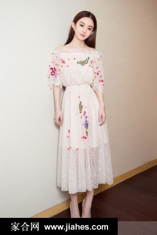 赵丽颖身着一字肩蕾丝裙翩然绽放宛若花间仙子降临